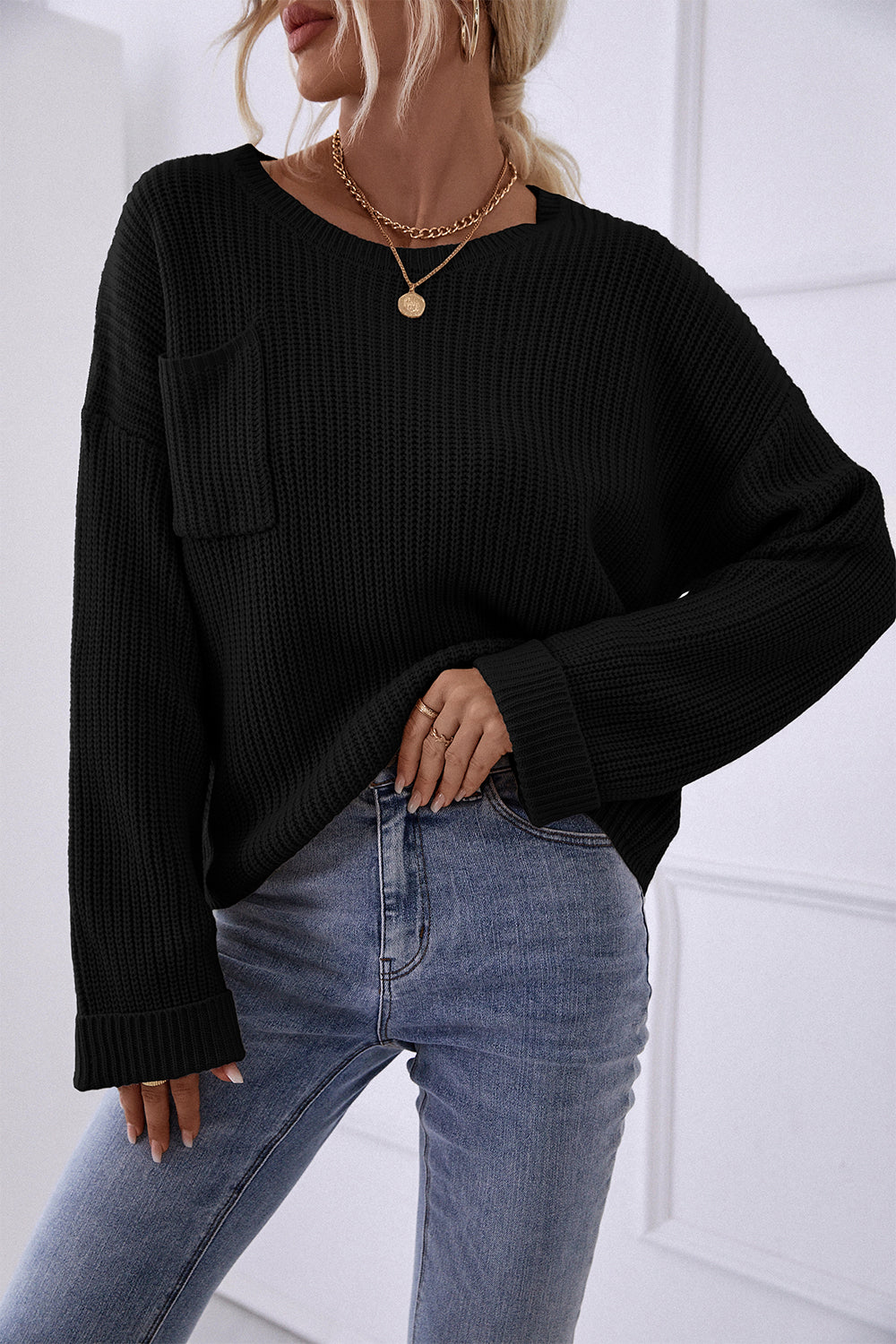 Pocket Oversized Knitted Pullover Sweater