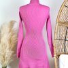 All The Rumors Are True Long Sleeve Ribbed Sweater Dress in Magenta