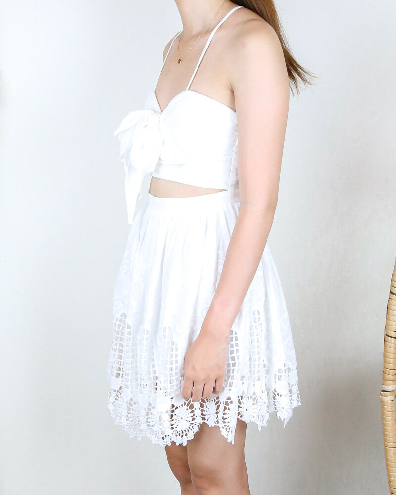Woolberetset Ruched Strapless Mini Mesh Dress in White