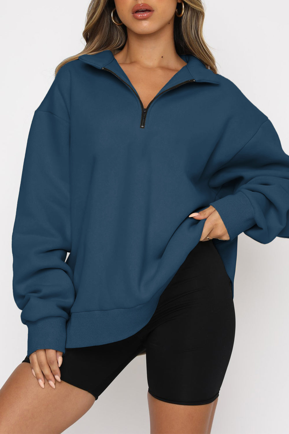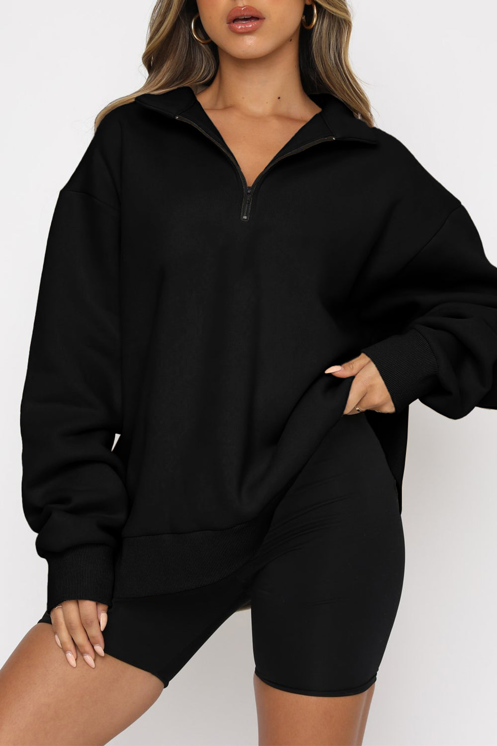 Black Quarter Zip Up Oversized Sweatshirt quantity