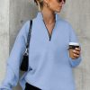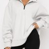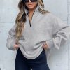 Quilted Pattern Quarter Zip Loose Sweatshirt with Pocket