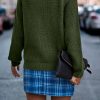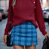 Button Down Crew Neck Ruffle Knit Pullover Sweater