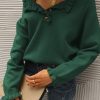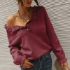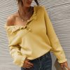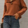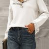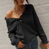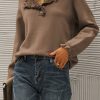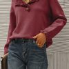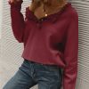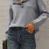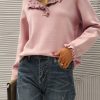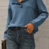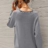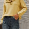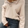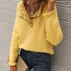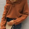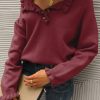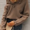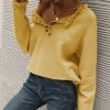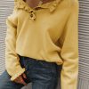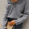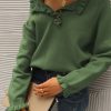 Long Sleeve Button Down Ruffle Knit Pullover Sweater Tops