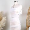 Woolberetset Ruched Strapless Mini Mesh Dress in White