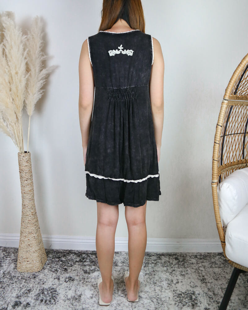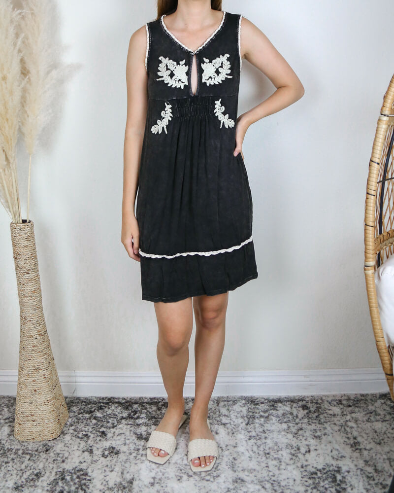 Woolberetset – Acid Wash Floral Embroidery Dress – Vintage Black