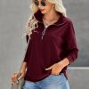 - This soft zipper sweatshirt with zipper design of the lapel can create a V-neck feel, which modify the face and the neck,loose fitting style is suitable for all body shapes.The simple solid color is versatile,matching everything and never goes out of style.