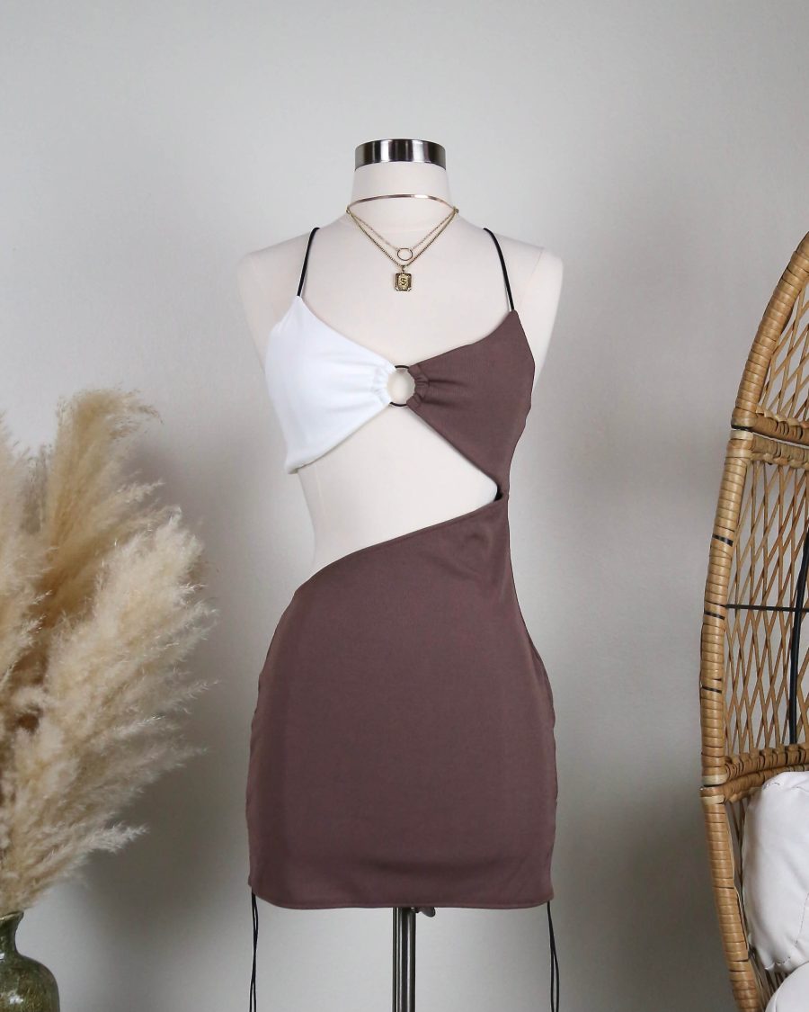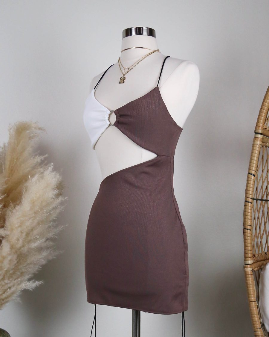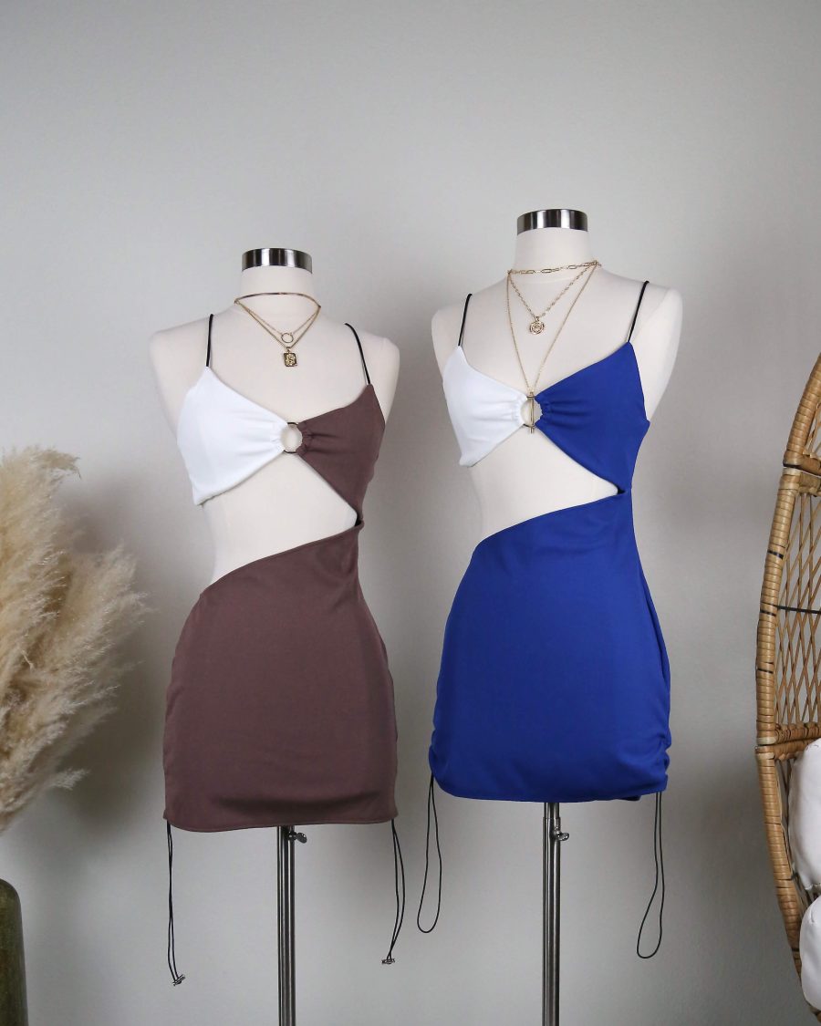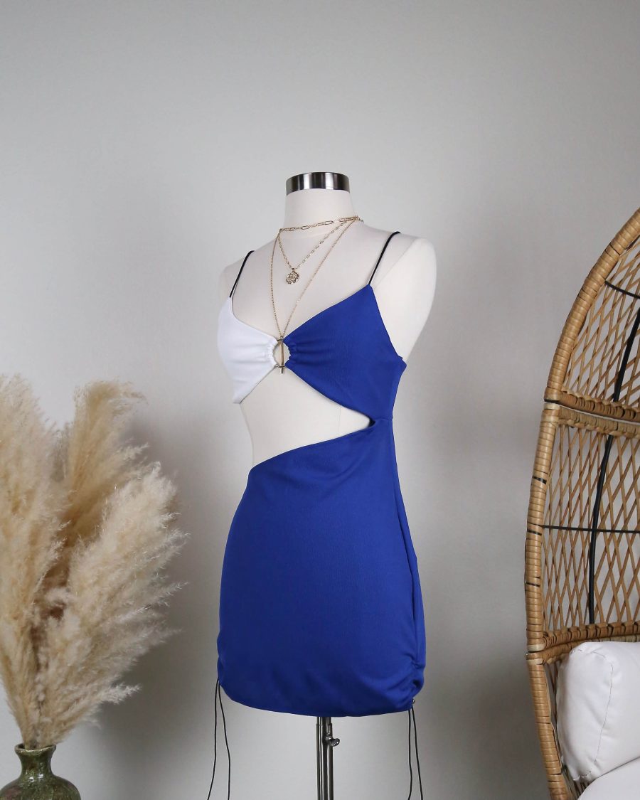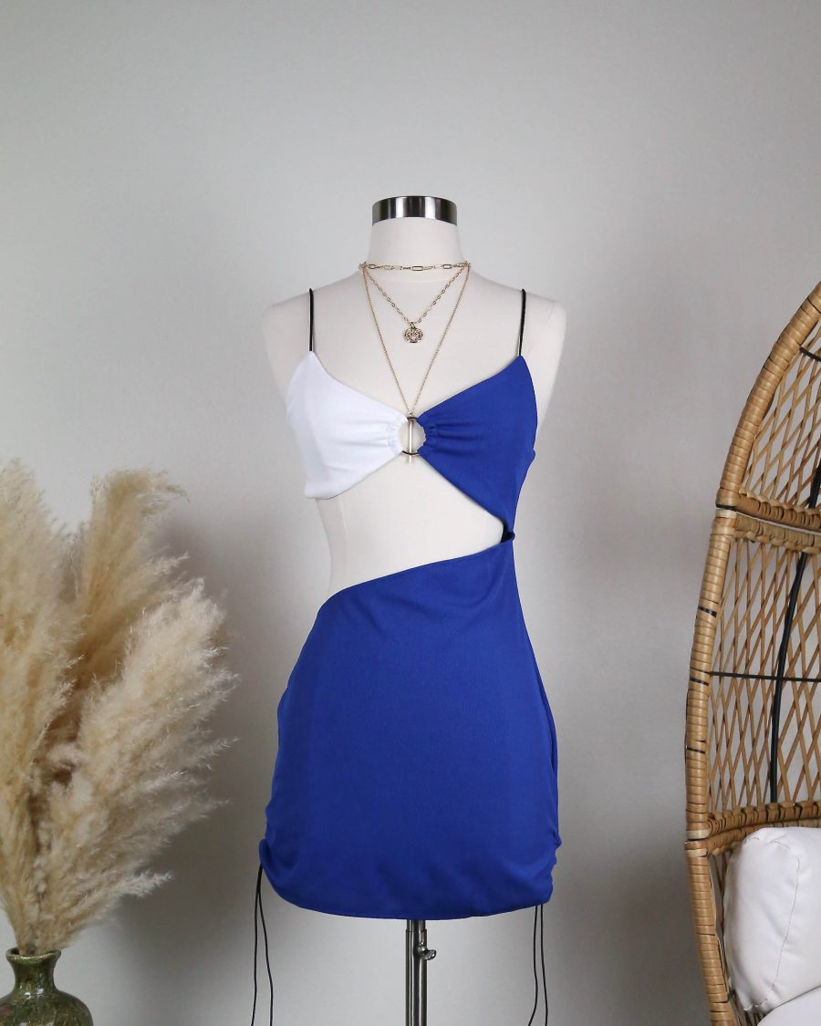 Ribbed Color block Mini Dress with Mid Cutout in More Colors