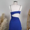 Wedding Guest Dress Satin Maxi Dress in Dusty Blue