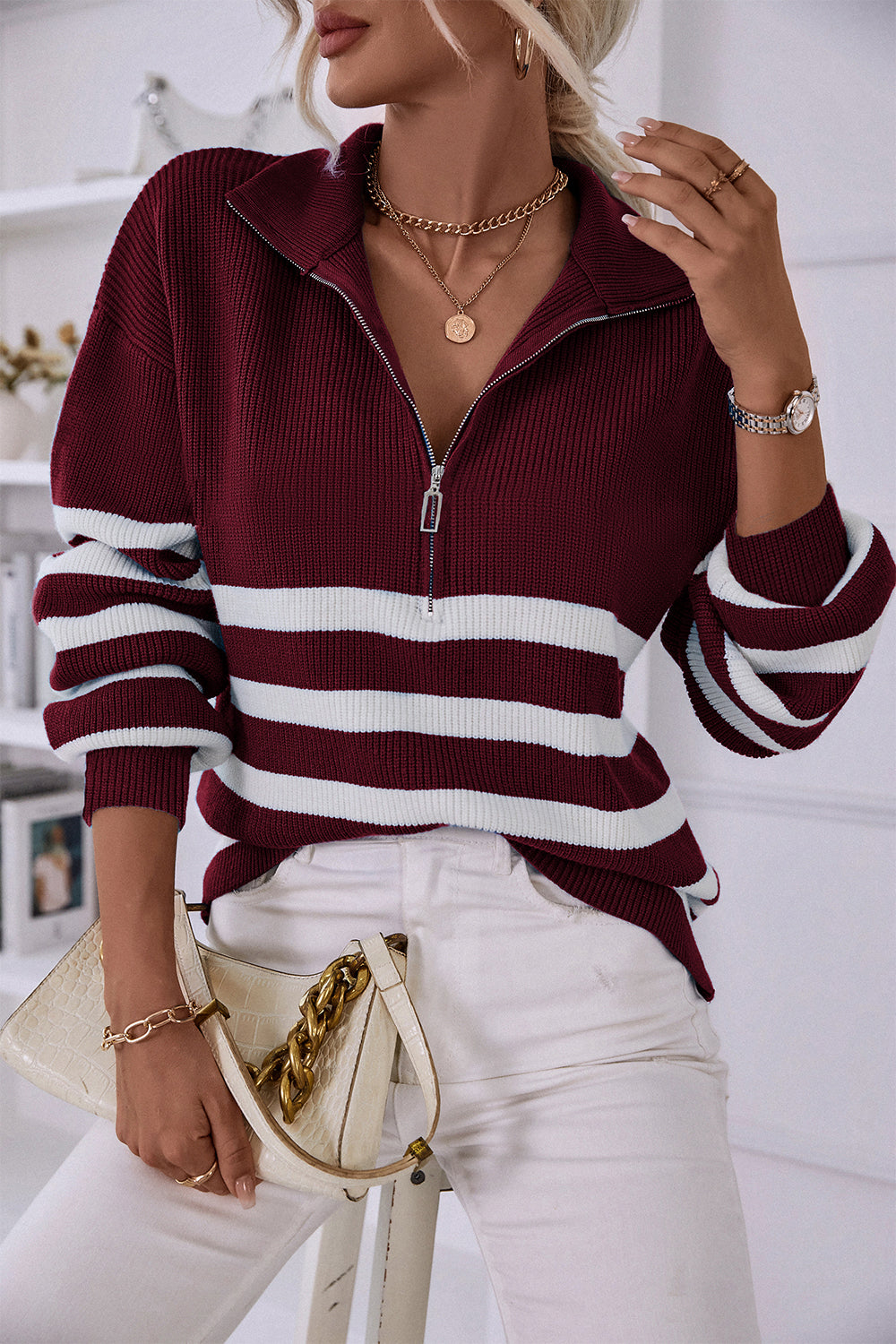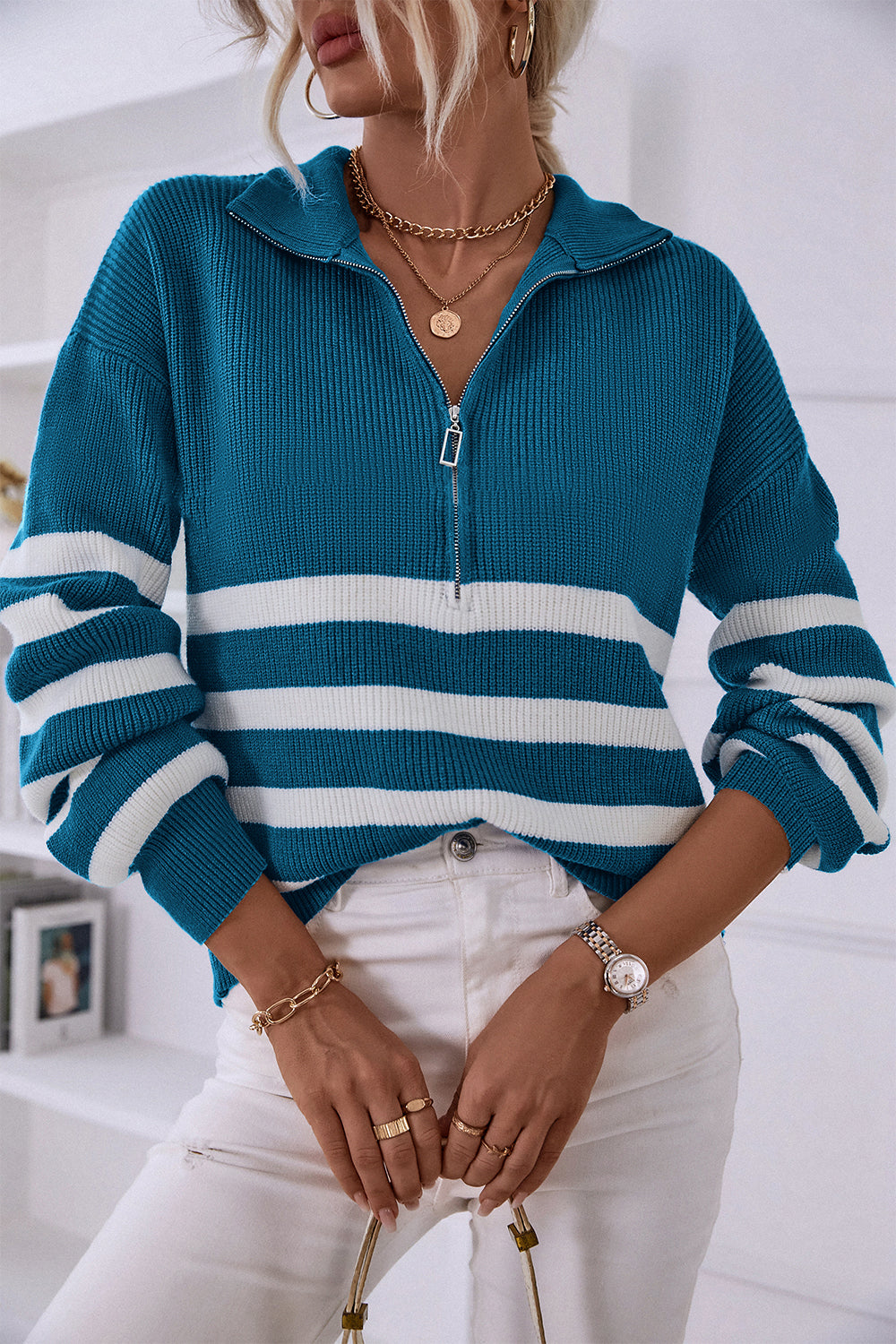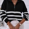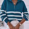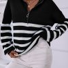 V Neck Collar Ribbed Knitted Stripe Pullover Sweater quantity