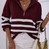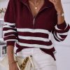 V Neck Collar Ribbed Knitted Stripe Pullover Sweater