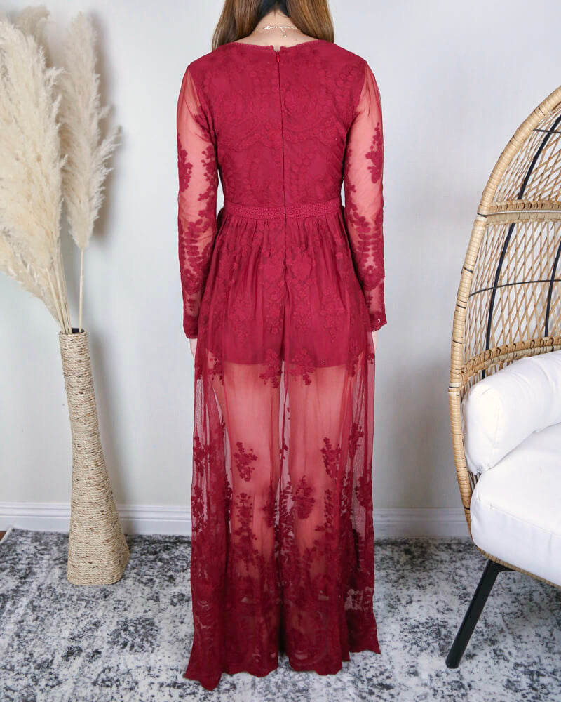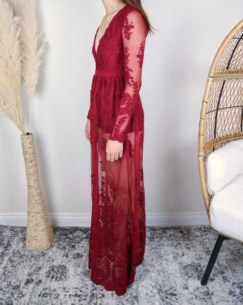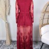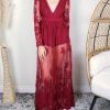 Woolberetset Embroidered Maxi Dress in Deep Red
