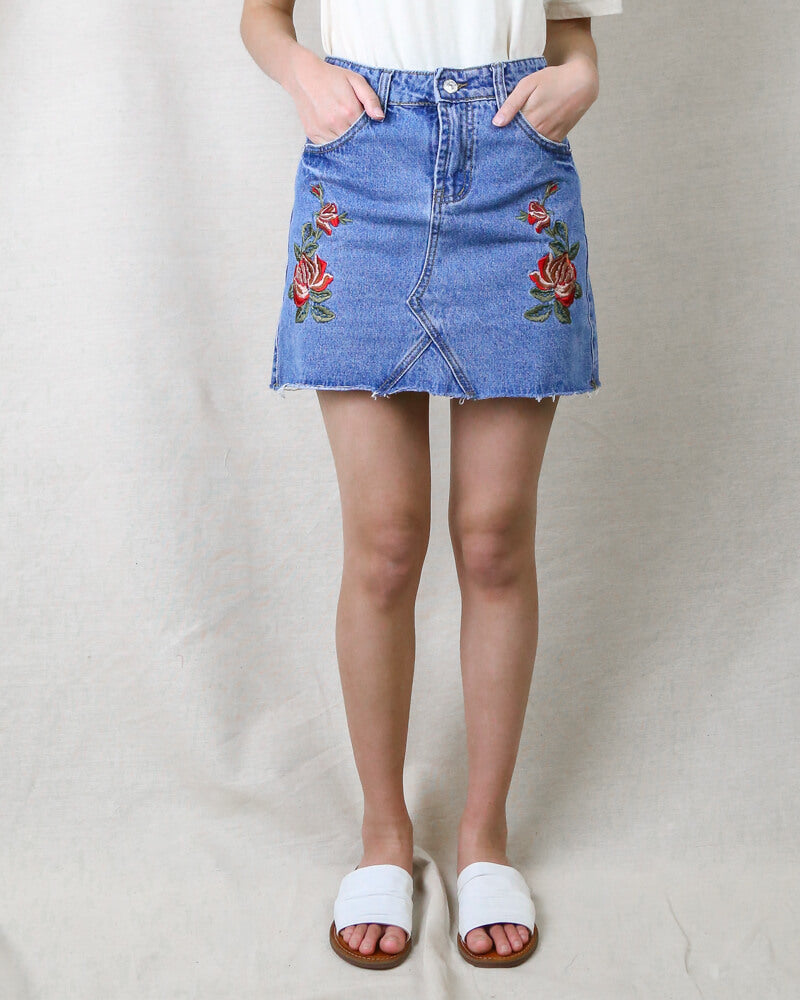 Woolberetset Embroidered Denim Skirt in More Colors