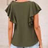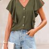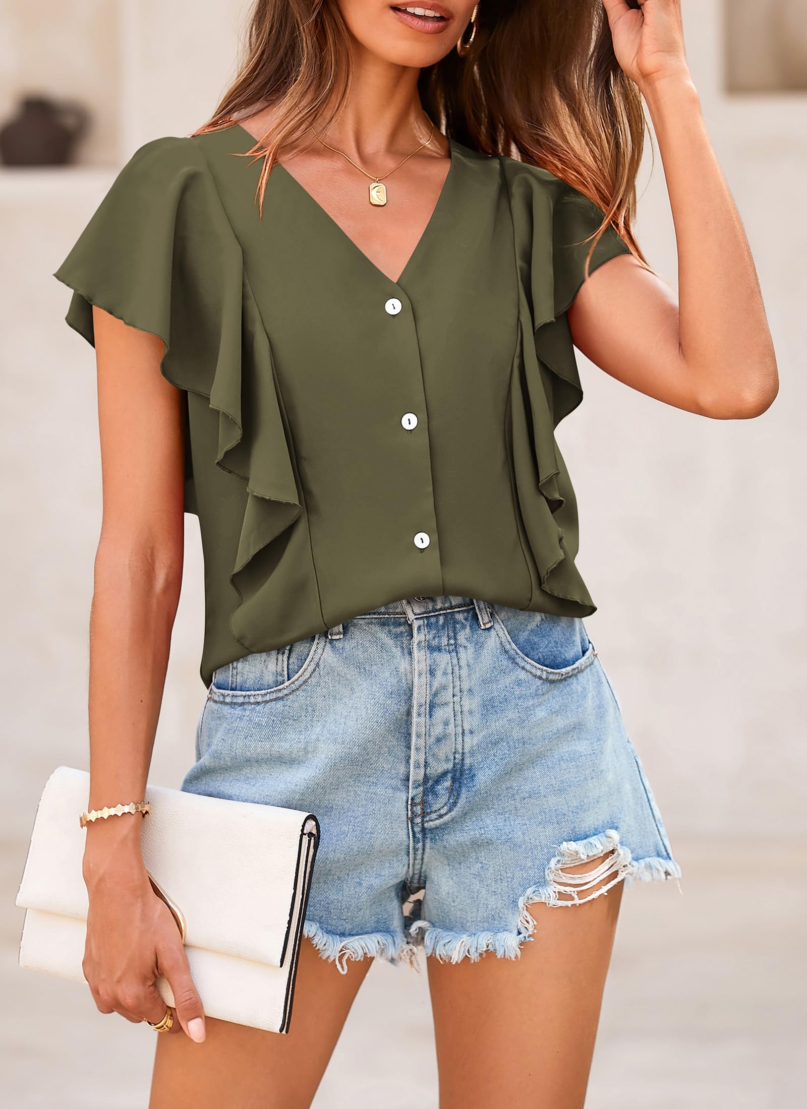 Design: A flattering V-neck design with ruffled sleeves