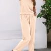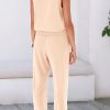 Design: V-neck vest, sleeveless top, high-waisted design, sweatpants with pockets