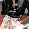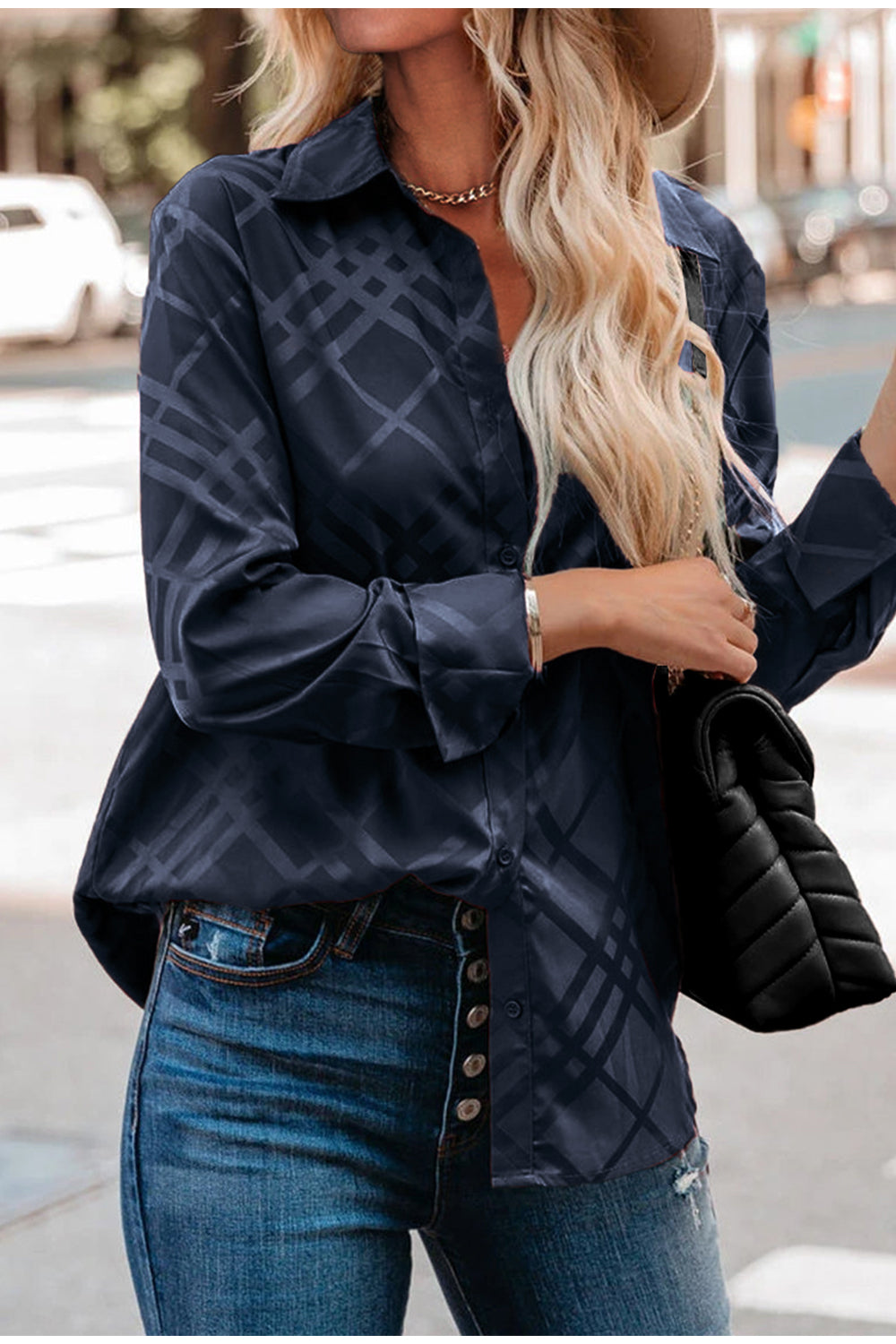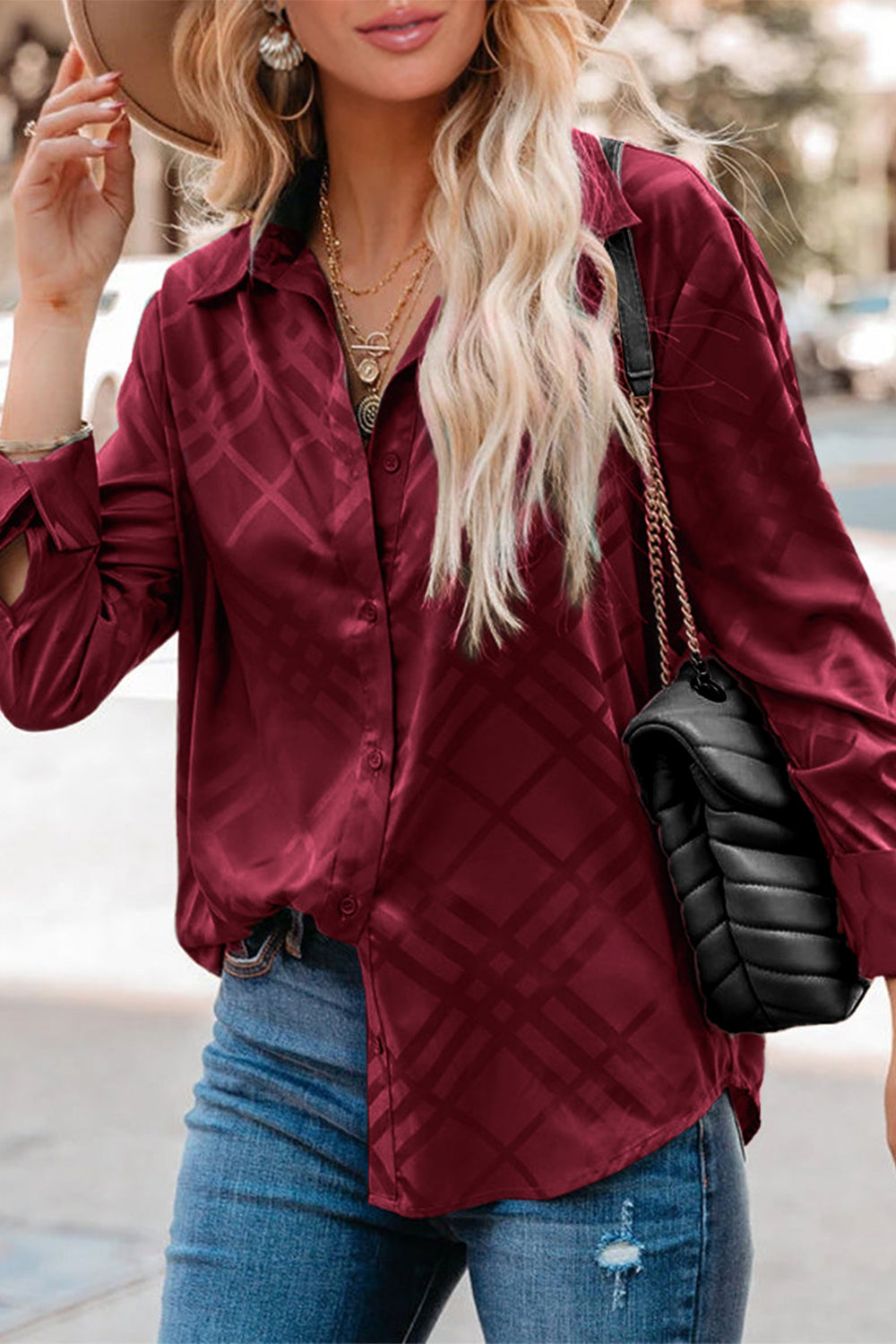 Satin Button Down Roll Up Long Sleeve Shirts quantity